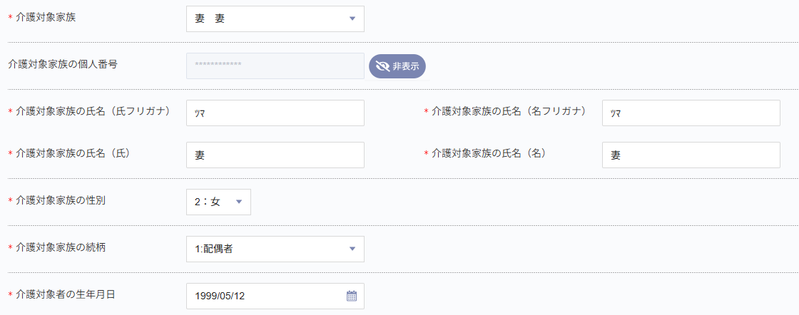 ※「ジンジャー人事労務」に登録された介護対象家族の情報を反映した際のイメージ