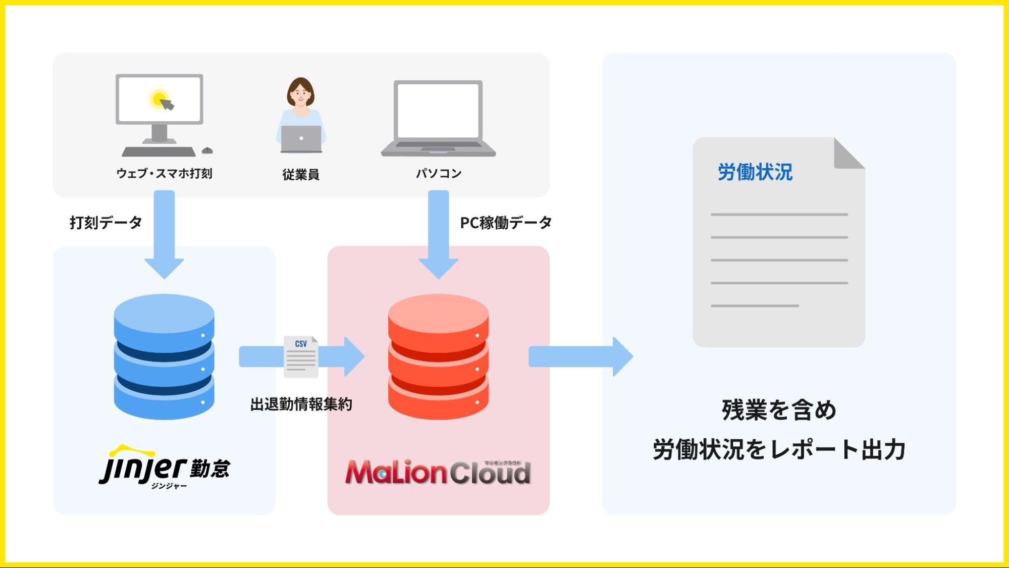 ▼「ジンジャー勤怠」と「MaLionCloud」の連携イメージ